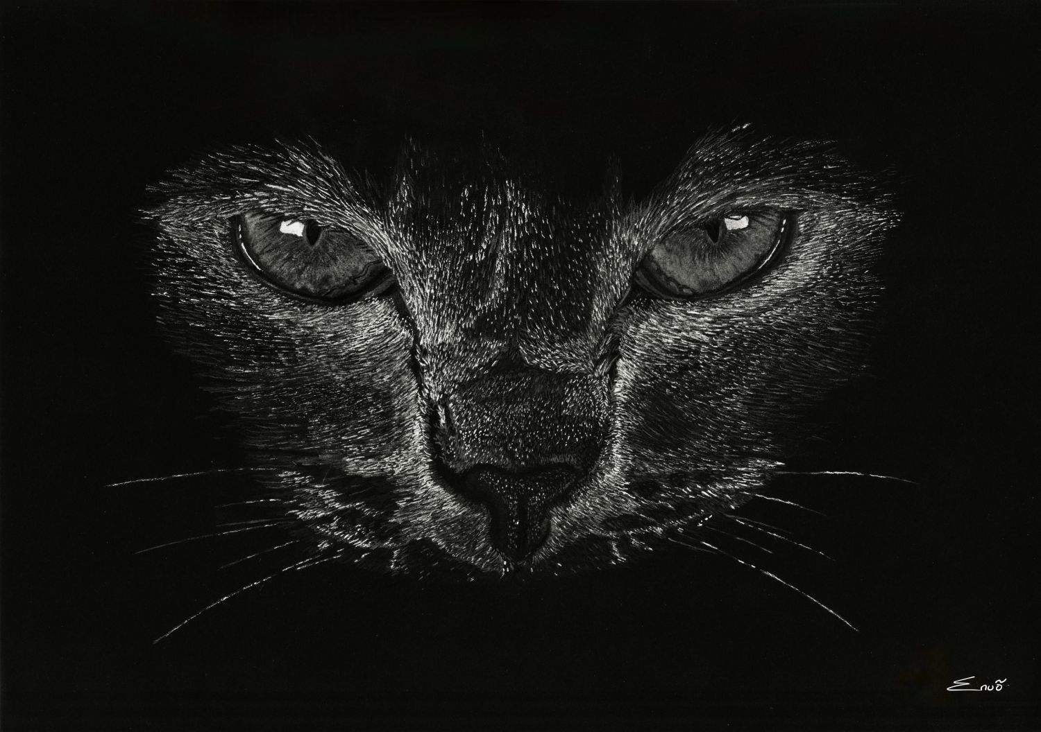 31 décembre 2013, sur papier noir, crayon de couleur blanc, gris et feutre blanc, 21 x 29,7 cm